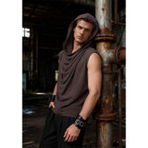 Men Post Apocalyptic Hooded Top Apocalyptic Sleeveless Vest Medieval Vintage Retro Shirt Renaissance Sleeveless Shirt Cosplay Costumes