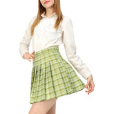 Women Girls Plaid Skirt With Shorts High Waist Pleated Skater Skirts
