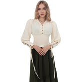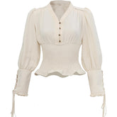 Women Renaissance Blouse Pirate Top Gothic Shirt V-neck Lantern Sleeves Shirt Smocked Waist Victorian Blouse For Party Daily Wear
